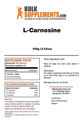 BulkSupplements Pure L-Carnosine Powder (100 grams)