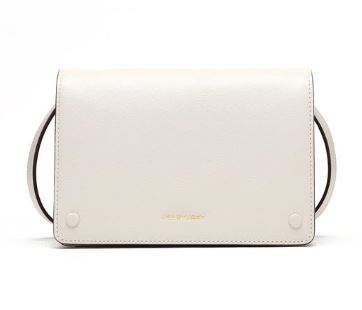 아이보리 컬러 바탕에 사피아노 소가죽 소재로 고급스러우며, 심플한 디자인과 하단 중앙에 JILLSTUART 금장 로고로 포인트를 준 크로스 백 입니다.