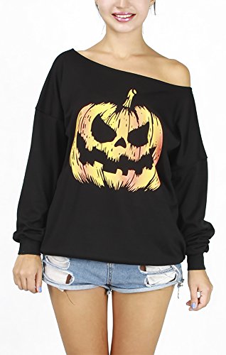 [ITEM SPECIFICS] Causal long sleeve pullover sweatshirt for women, different stylish digital print on the front, oblique collar and off shoulder, sexy and fashion. Moderate thickness; moderate softness; good stretch. The unique style, fleece material keep you warm, suitable for the coming fall and Spring season. Black and white color can be used for various occasion and easily match