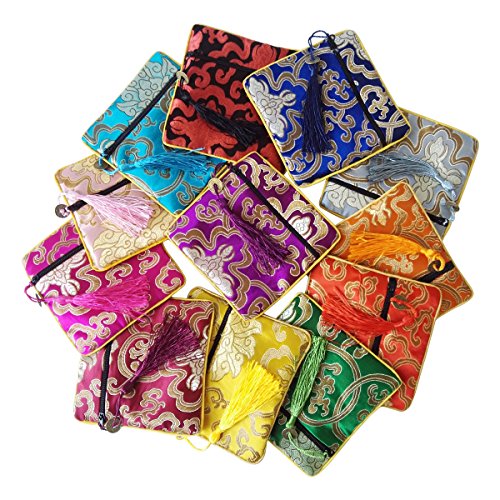 12PCS Silk Brocade Jewelry Pouch Bag Drawstring Coin Purse Gift Bag Value Set Mix Colors