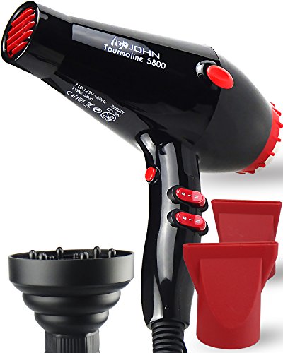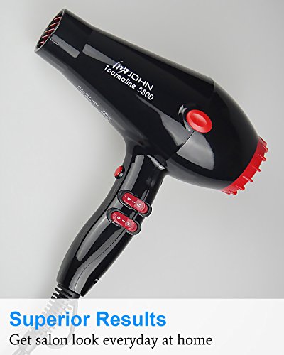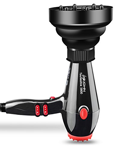 JOHN 2200 Watt Professional Hair Dryer with Collapsible Diffuser Fast Drying Ceramic Ionic Tourmaline 5800 Blow Dryer