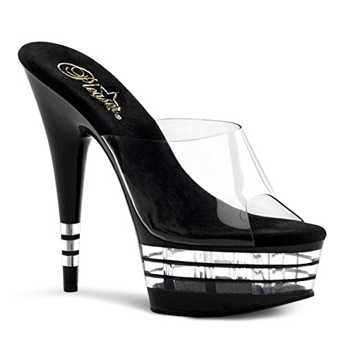 Product Description Go out in style with these black and clear slide sandals. Layered black and lucite platform and heel with clear top strap. Unique and fabulous.0