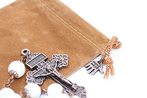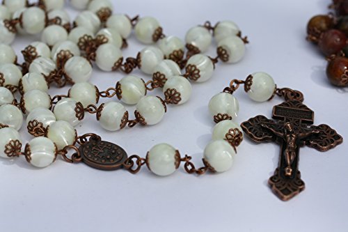 -. Title : Large 10mm White Sea Shell MOP Rosary in Copper Oklahoma