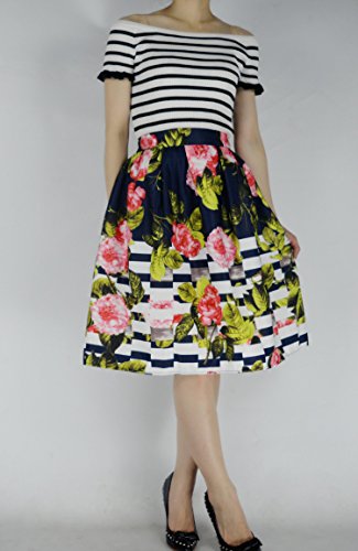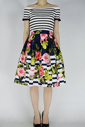 -. Title : YSJ Lady's Pleated Midi Skirt High Waist A-Line Floral Striped OL Skirts