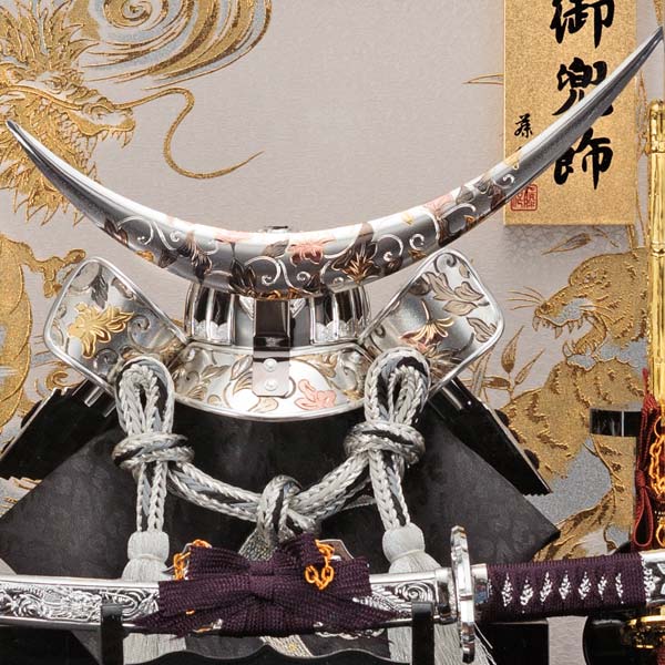 ・五月人形兜飾りには、お子様の健康な成長を願って勇壮に力強く仕上げました。
