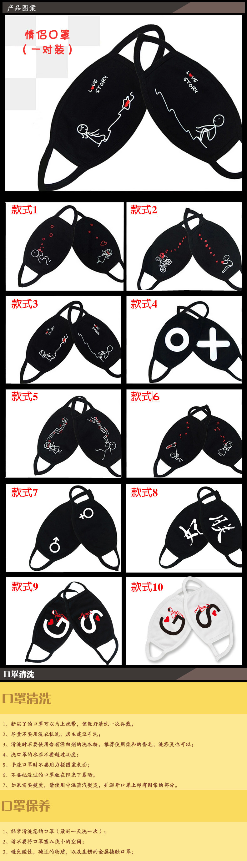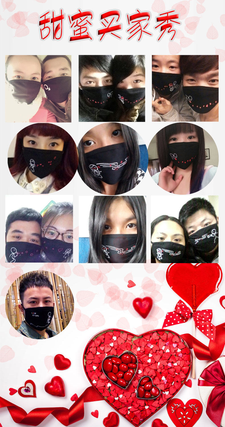个性情侣口罩 男女韩版纯棉防尘可爱卡通韩国时尚冬个性黑色口罩