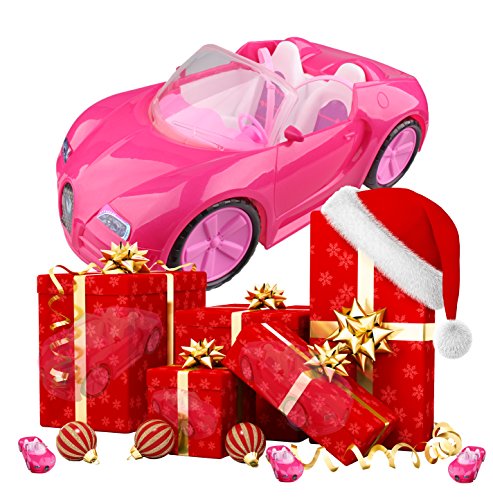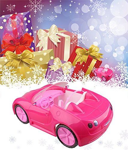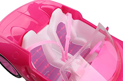 Item Size:14 in*7.3 in*4.5 in One car in package!!! Barbie doll can hit the road in style with this super glam convertible! Designed with an open roof, this pink two-seater is ready for an open road adventure -- or a quick trip to the store. Its sparkly pink exterior features tires with realistic styling. Pink interior seats make a statement with seat belts for realism and Barbie "upholstery" labels for style.Includes convertible with details and styling; Colors and decorations may vary.Feature
