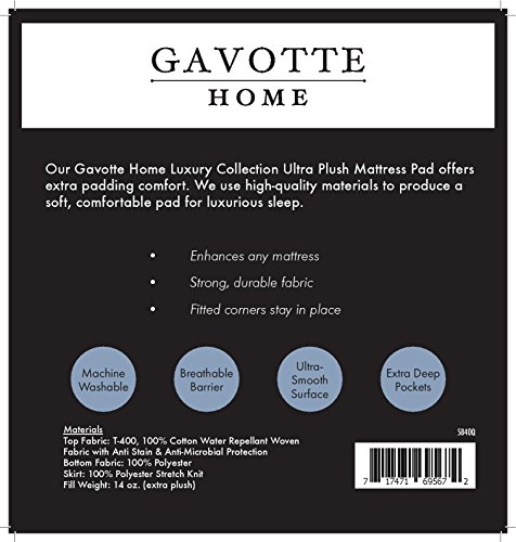 -. Title : Gavotte Home Ultra Plush Mattress Pad - Anti-Stain, Anti-Microbial and Water Repellant, 100% Cotton Mattress Cover by ShopBedding