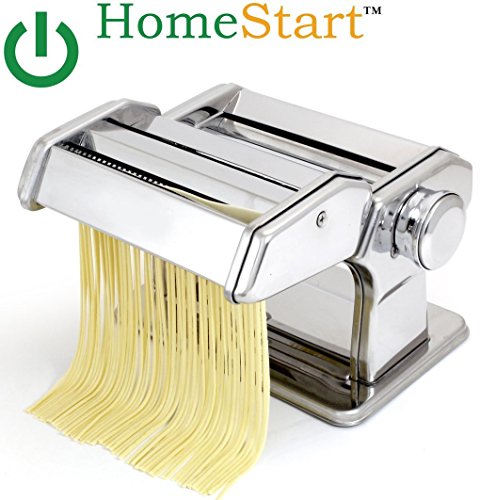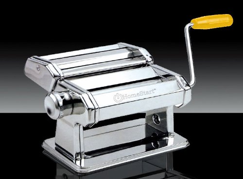 Studio : HomeStart Publisher : HomeStart Binding : Kitchen Product Description -Make authentic Fresh pasta in your home with this pasta machine -Easy Pull Handle regulates thickness of pasta dough ( 9 Different Positions) -Includes hand-crank and clamp with ABS plastic handles. -Make: Spaghetti / Fettuccine / Noodles and More Includes Instructions and Recipe Booklet HomeStart Pasta Maker is a great addition to someone new in the kitchen or a seasoned chef. Make your own Healthy Pasta, add fresh ingredients into your dough if you like to. Home chefs are more interested than ever in creating more wholesome ways to feed their families. Organics are in, and pasta is never out. The Homestart pasta machine is compact and versatile to fit into any kitchen decor. With this machine you'll be able to make your favorite pasta as thick or thin as you like it. It has an easy to use adjustment knob that allows you to control the thickness of pasta - from 0.3mm to 2.5mm. This heavy duty machine has a chrome plated steel body. The rollers and cutters are made of long lasting anodized aluminum. The anodized aluminum is a wellness innovation; rollers and cutters grab the dough better and because they are free from heavy metals, such as chromium and nickel, you get healthier results. Gears are case-hardened tempered steel. Can free stand on the counter or use the Included clamp for securing to a counter. Includes an easy to start Instruction booklet. Make authentic Fresh pasta in your home with this pasta machine Easy Pull Handle regulates thickness of pasta dough ( 9 Different Positions). Make: Spaghetti / Fettuccine / Noodles and More Manufactured by: HomeStart UPC: 854171005018 Item Weight: 6.30 LBS Box Dimensions: 7.85 x 8.25 x 6.15 Inches 0