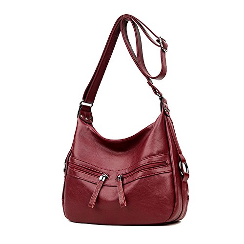 -. Feature : It's made with PU leather,Polyester fiber lining.Top zipper closure. / Size: L:13.38"×H:10.23"×W:5.90".Weight:1.43ib.Crosbody strap:about 40inches. / 2 Compartment,1 interior zipper pockets,2 interior slip pockets.1 back pocket,2 front pockets,2 side pockets. / Black,wine red,Purple,Blue,Bronze are available.Many pockets for all of your small essentials / Simple but fashion design,well sewing and perfect for work, everyday use and shopping.
