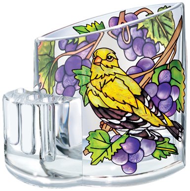 Amia Hand Painted Acrylic Pen Holder Featuring a Goldfinch Bird Design, 4-1/2-Inch
