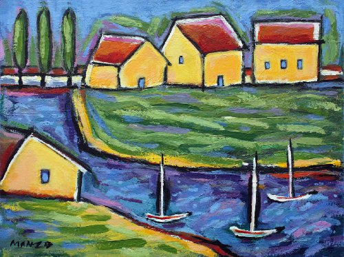 This print of an original acrylic painting by Maryland artist John Manzo captures the peace and harmony of a village in Tuscany. John is known for his loving depictions of simple pleasures, and for his simple and direct style of painting.