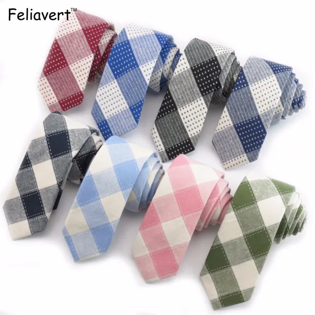 상품 내용 사양 -------------------------------------------------------------------------------------------------------------------------------------------------------------- Feliavert 남성 넥타이 100% 면 패션 6 센치메터 스키니 넥타이 격자 무늬 넥타이 캐주얼 웨딩 파티 Cravate 실제 추적 번호