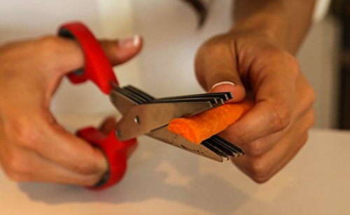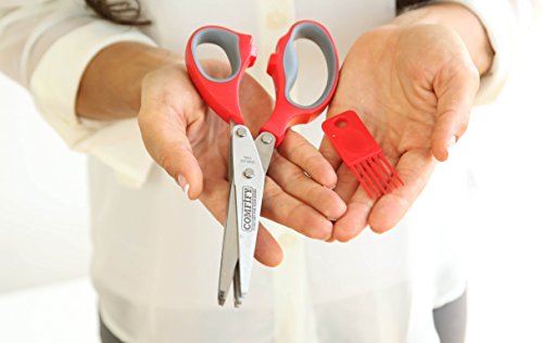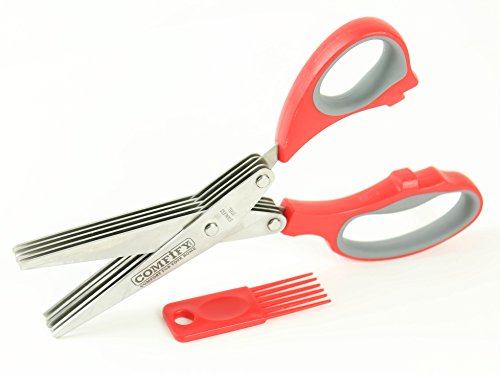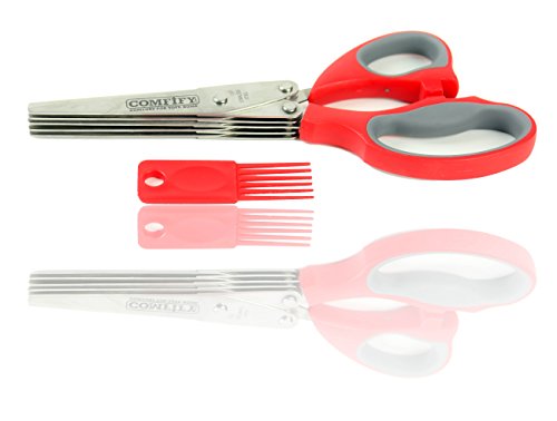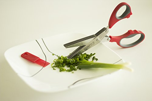 - Feature : BEST HERB SCISSORS/SHEARS - These herb scissors will be a great, useful addition to your kitchen utensils. Use them every day when you prepare salads and cook any mean that includes herbs and vegetables. Create great-looking garnishes for all of your dishes! / IDEAL HERB SCISSORS for chopping, cutting and mincing herbs fast and easy! Use these kitchen scissors with basil, dill, chives, oregano, thyme, parsley, mint, fennel and many more herbs or vegetables. / TIME SAVING DESIGN - 5 Stainless Steel Blades to get the job done 5 times faster than with regular scissors or knives. Imagine how fast your cooking pre-time will be during busy holiday family dinners! COOK IN COMFORT - Cut the herbs neatly and quickly right where you want them: over a cutting board, a frying pen, salad bowl or a pot. Save your hands and fingers from sharp knives! / HEAVY DUTY, COMFORTABLE, CONVENIENT DESIGN - Soft, comfortable, rubberized silicone bands, 3' long sharp stainless steel blades. BONUS: Special cleaning tool for quick clean up! These herb scissors are dishwasher safe. Great idea: use these scissors for your craft projects and decorations! / RISK FREE SHOPPING - with Amazon's world class 100% A-to-Z Guarantee and Hassle Free Life Time warranty from Comfify, you are protected.