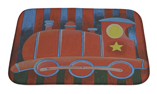 Gear New No Slip Microfiber Memory Foam Red Train Locomotive Bath Rug Mat, 24" X 17"
