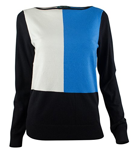 Crafted from a color block boat neck sweater. 43% Cotton/ 41% Nylon/ 13% Silk/ 3% Elastane. Hand washable. Imported.
