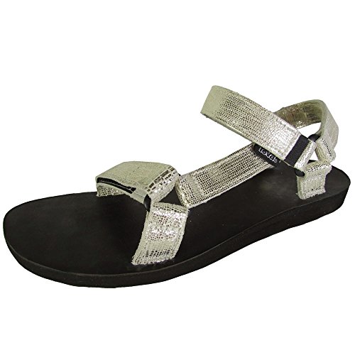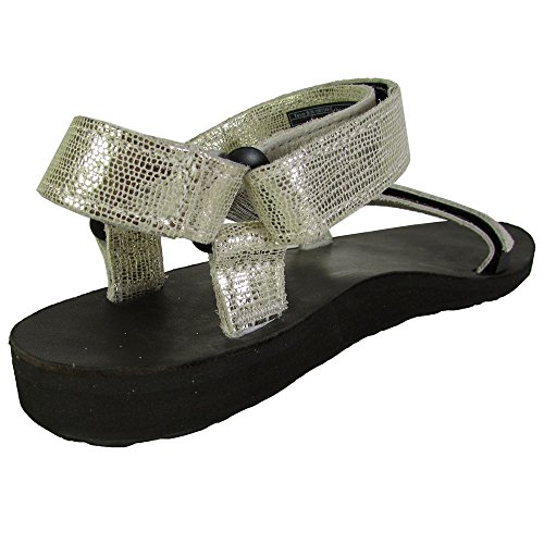 Classic outdoor sandal with adjustable hook-and-loop straps in shimmery textured finish