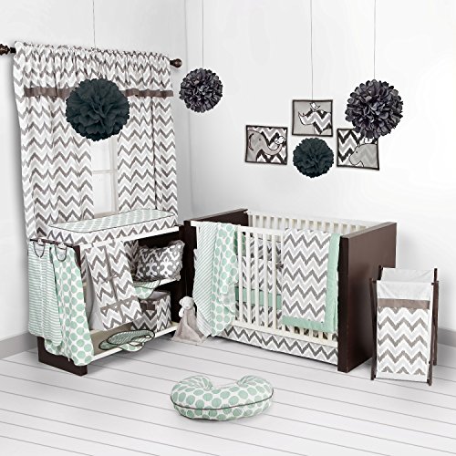 -. Title : Bacati Ikat Mint/grey 6 Crib Set with 4 Muslin Blankets
