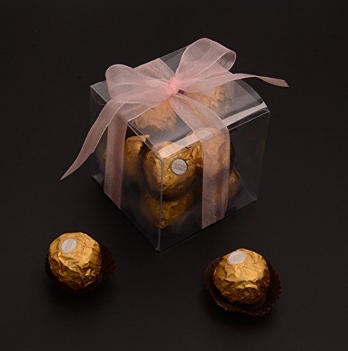Mandydov 50pcs Anti-Scratch Clear Plastic PVC Box with 2 Rolls of Ribbon for Party Favor Wedding Retail Products Wrapping & Packaging Gift Candy Boxes (Pink)