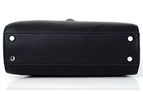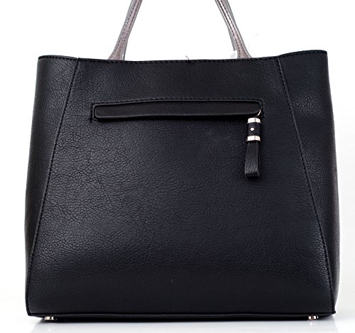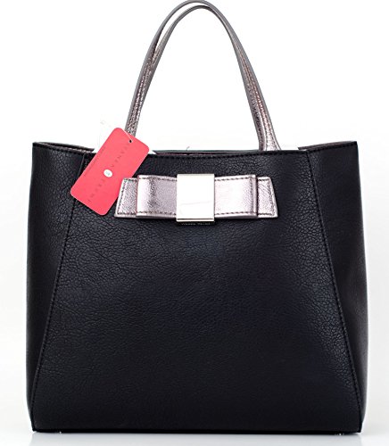 -. Brand : IVANKA TRUMP -. Color : Black -. Department : womens -. EAN : 0847109041615 -. Feature : Top Magnetic Closure / Simulated Leather / Exterior: 1 zip, Interior: 1 large compartment 2 pocket 1 card slip 1 zip / 12" W x 10"H x 4" D, 5 " drop / Silver Bow at Front -. PackageQuantity : 1 -. ProductGroup : Shoes -. ProductTypeName : HANDBAG -. Title : Ivanka Trump Blair Magnetic Shoulder Bag Small Satchel -. UPC : 847109041615 Clean and sophisticated tote features combination of glazed and Saffiano faux leather. Front bow ads a girly touch.