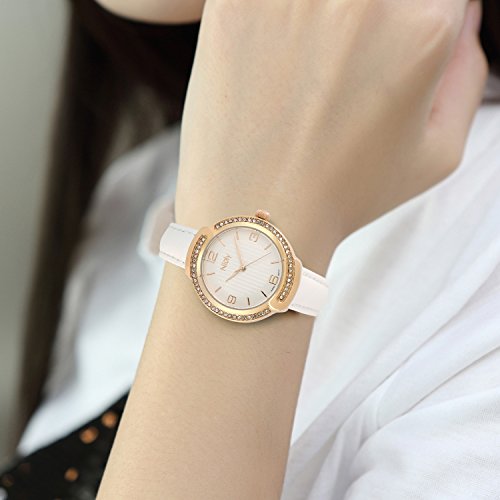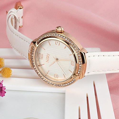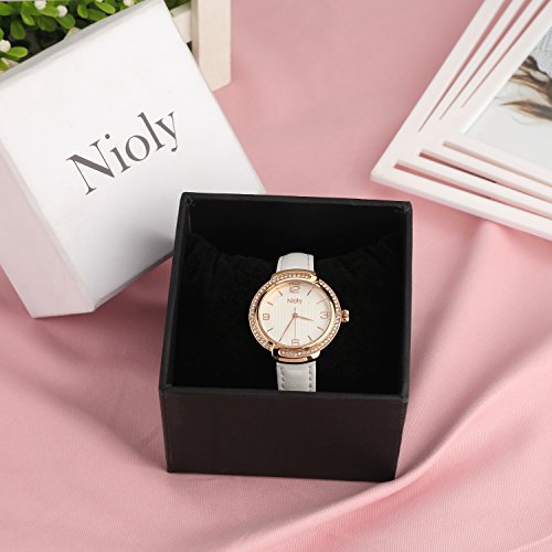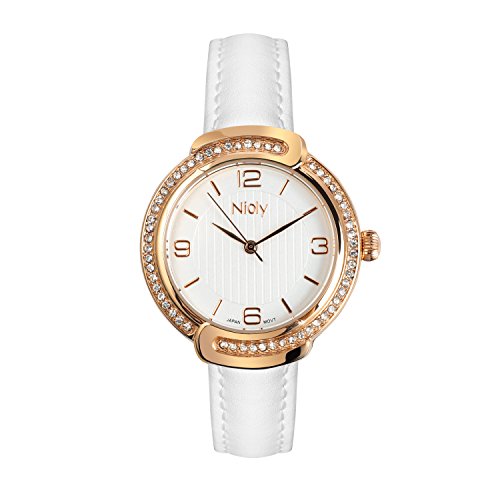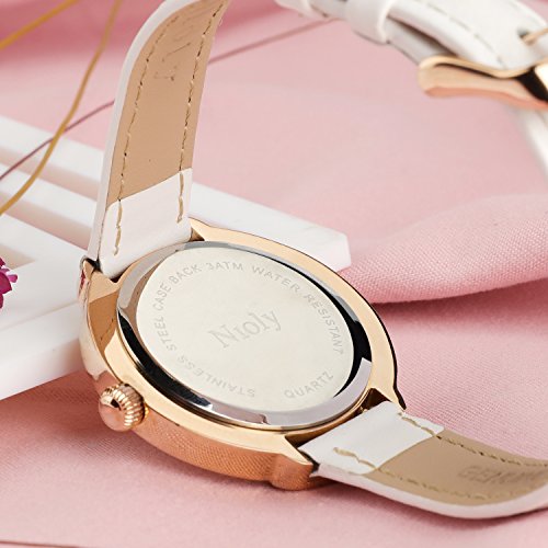 -. Title : Nioly 腕時計 レディース スタンダード アナログ ウォッチ 3気圧防水 ローズゴールド ホワイト 本革【化粧箱、保証書付き】