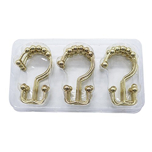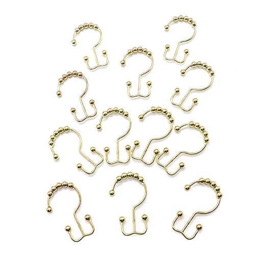 Double Glide Shower Curtain Hooks, Buorsa Stainless Steel Double-hook Shower Curtain Rings Hooks, Set of 12