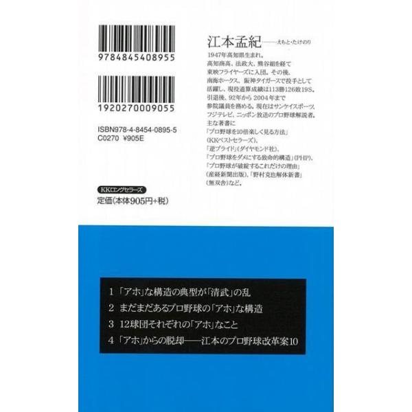 【商品基本情報】 商品名称:アホがプロ野球を滅ぼす 著者/出版社:江本 孟紀/江本 孟紀 初版発行日:2012/03/01 サイズ:新書判 ページ数:217 ISBN/JAN:9784845408955/4528189385764