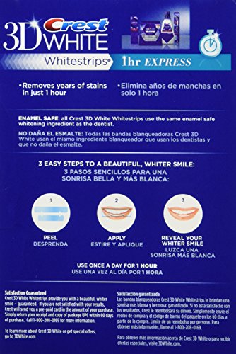 Crest 3D White 1 Hour Express Whitestrips.12 Strips.Removes years of stains in just one hour.