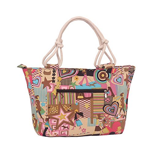 Marca West Women's Print Handbag Purse Shoulder Beach Messenger Bag Tote Satchel (Flower Pink)