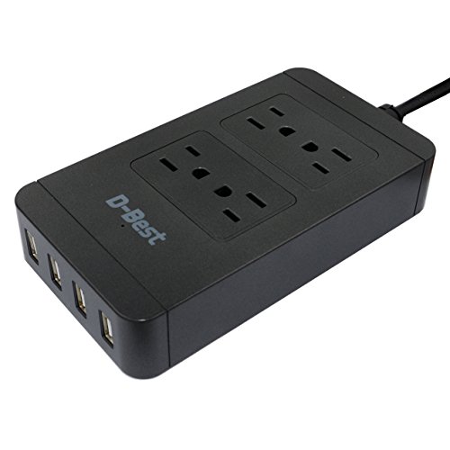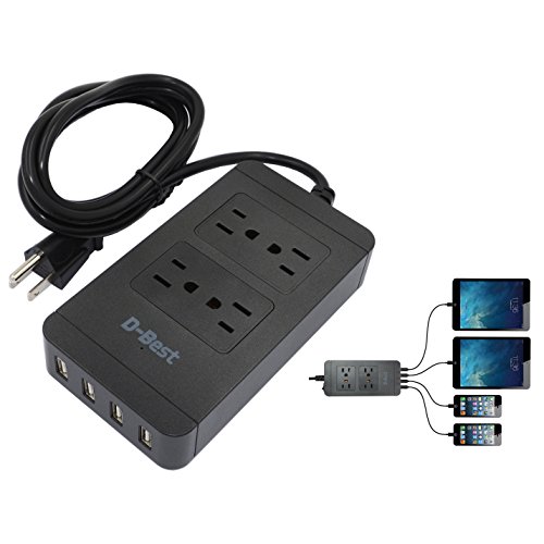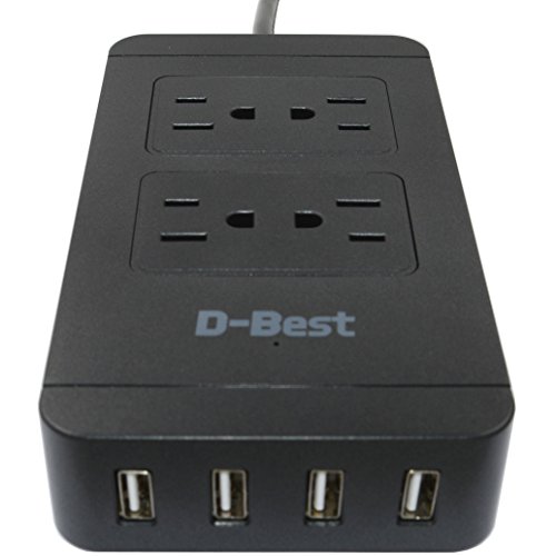 D-best 4-Outlet Surge Protector Power Strip with 4 USB Ports Quick Charging Station 6-Ft Cord for Home, Office, Kitchen,PC,Smartphone, Tablet, Laptop and More (Black)