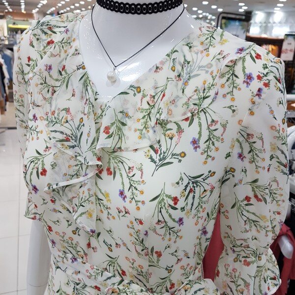 살랑시폰에 프린트원피스네요아이보리에 여성스럽구요올드하지않은 플라워에 세련하네요하늘하늘 시폰에 제가 여리여리하구용밑단 언밸기장은 정말 롱롱해보여용날씬하게 잡아주는 핏에 완젼 만족이구요부담없이세련한 플라워에 넘 좋아하시네요