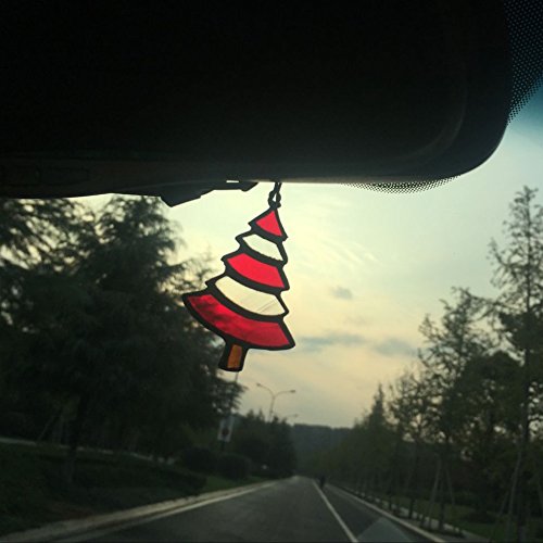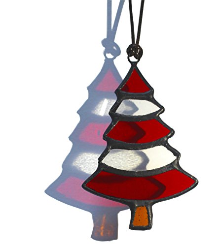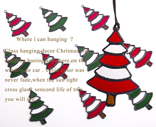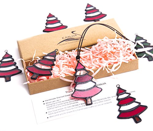 Handmade Xmas Gift Stained Glass Christmas Trees Ornament Window decoration Suncatcher Box Package (Red)