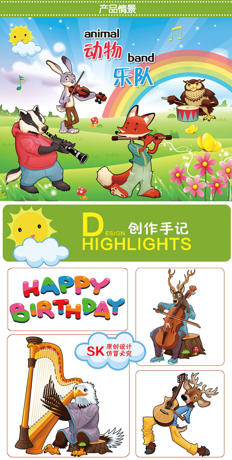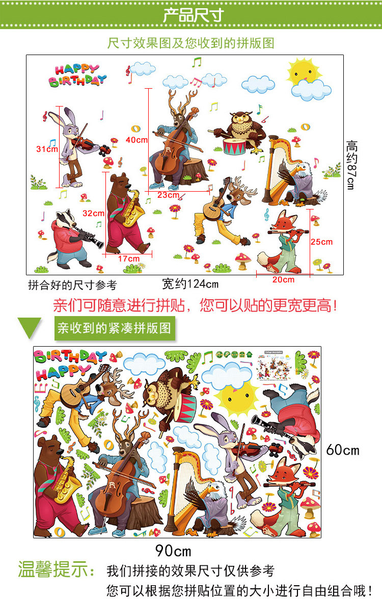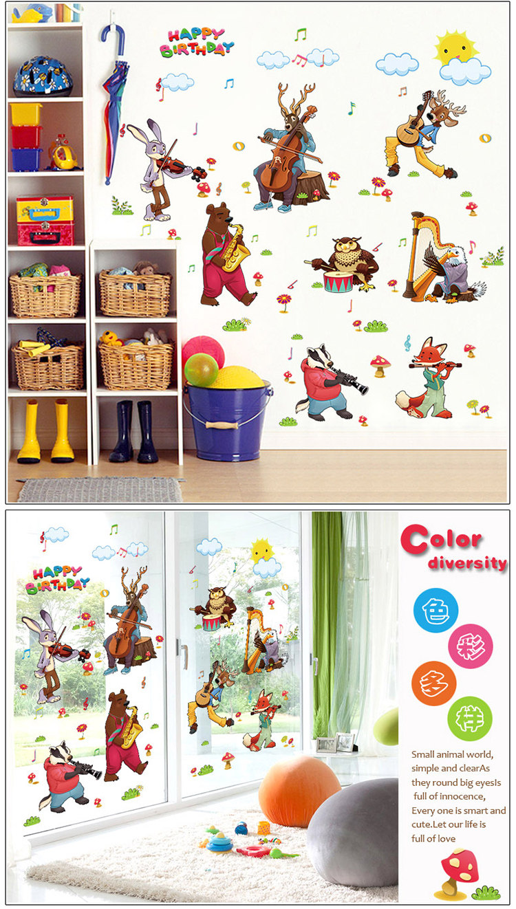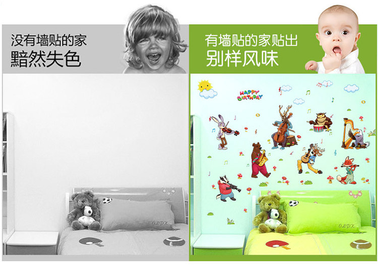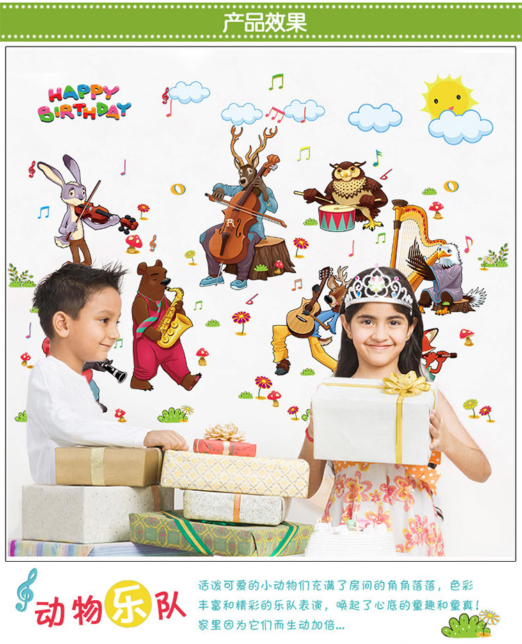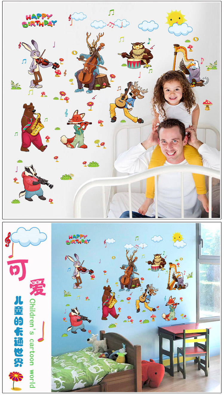 动物乐队卡通动漫儿童房间装饰幼儿园布置宝宝可移除墙贴纸贴画