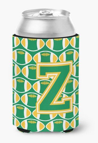 Caroline's Treasures CJ1069-ZCC Letter Z Football Green and Gold Can or Bottle Hugger, Multicolor
