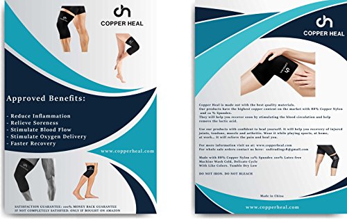 ✔ QUALITY MATERIAL: Our COOPER HEAL Compression Knee Sleeves are made of 88% copper nylon 12% spandex. Our manufacture is the only one who has copper patent.