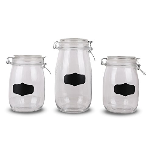 3 sets glass canister with chalkboad glass storage jar with locking lid,54/36/36oz