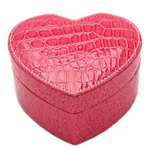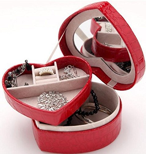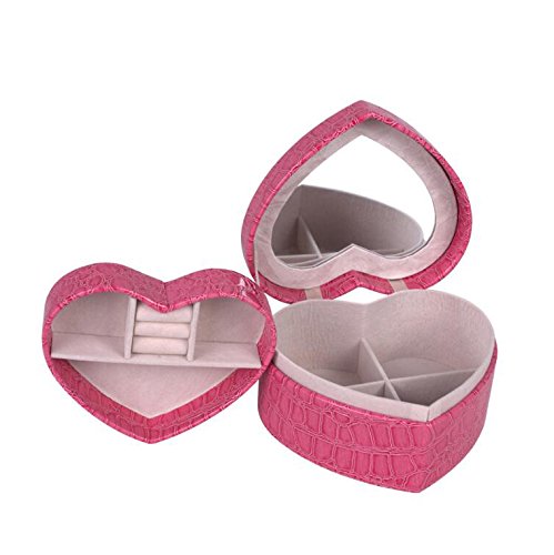 HOYOFO Jewelry Organizer Box Mirror 2 Layers Multi-purpose PU Leather,Rose Red