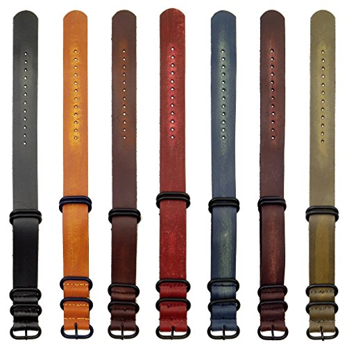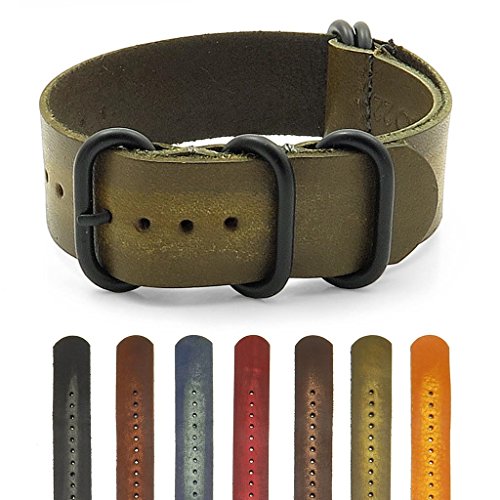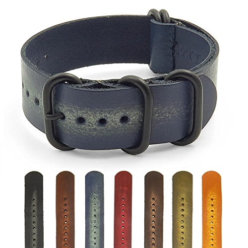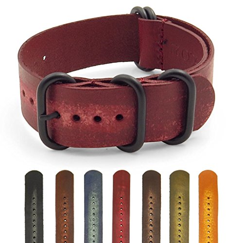 StrapsCo Distressed Vintage Style Leather Nato Strap Watch Band w/ Black Rings
