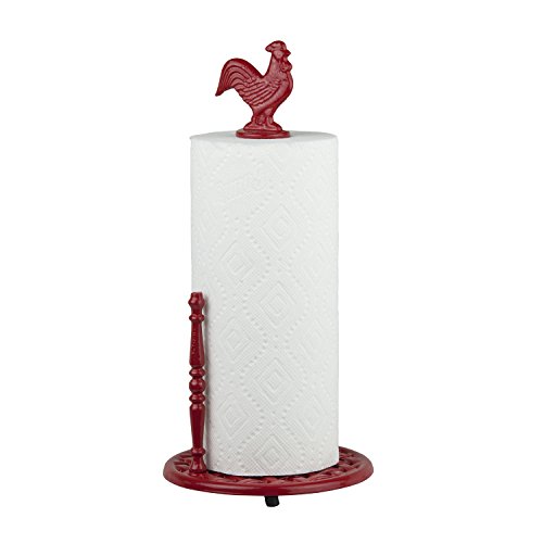 Home Basics PH44171 Cast Iron Rooster Paper Towel Holder, Red