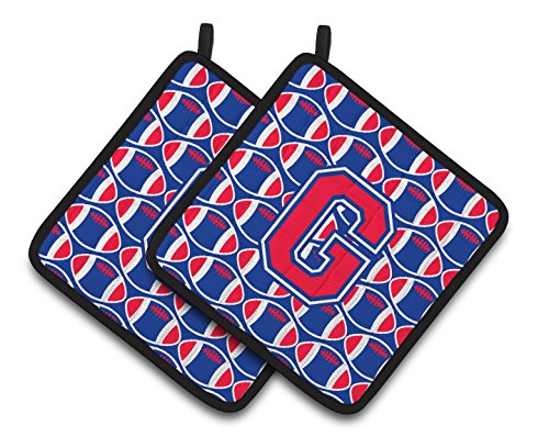 Caroline's Treasures Letter G Football Harvard Crimson & Yale Blue Pair of Pot Holders CJ1076-GPTHD, 7.5HX7.5W, Multicolor