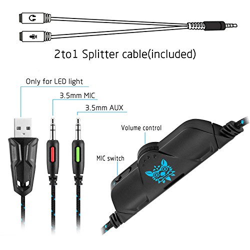 【Line-Controller und einstellbare Mic】 Mikrofon aus hartem Rohr, aber frei, um in jede Richtung fur exakte Abholung einstellen. Stilvolles ONIKUMA Logo auf Controller mit Funktionen Lautstarke +/- Walze und Mic Ein-Aus Schalter, sehr bequem zu bedienen.