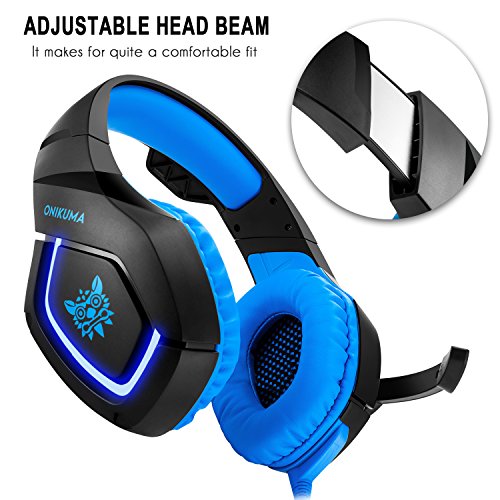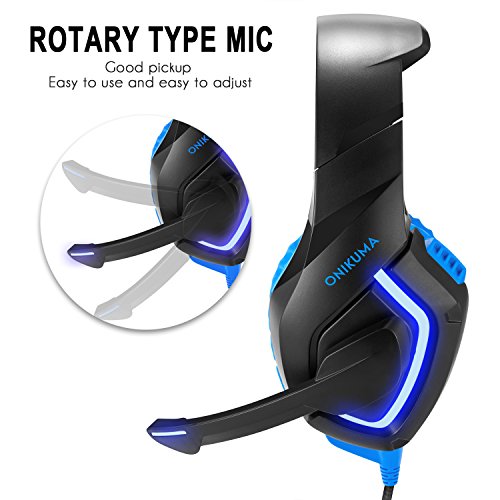 ONIKUMA PS4 Gaming Headset Xbox One Stereo Noise Isolation Bass PC Gaming Headphones with Microphone for PS4, Xbox One, laptops,tablets,mobile phone (with Led Lights Omnidirectional Mic)
