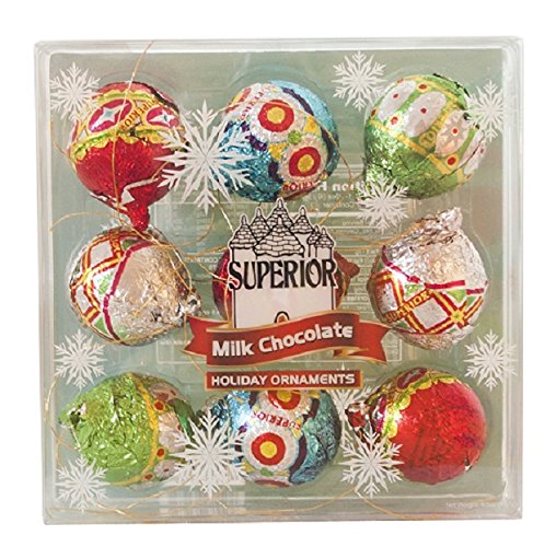 -. Feature : Holiday Semi-Solid Milk Chocolate Ornaments Gift (4.5 Oz) / Perfect Ready-To-Give Gift For Holiday's. OUD Kosher. Made USA / Each Gift Contains 9 Chocolate Ornaments Arrive Clear Gift Box / Molded, 3D Semi-Solid Milk Chocolate Balls, Foil Wrapped Christmas Ornament Foils With Attached Strings For Hanging / Chocolate Crafted Using Finest Premium Whole Milk Chocolate