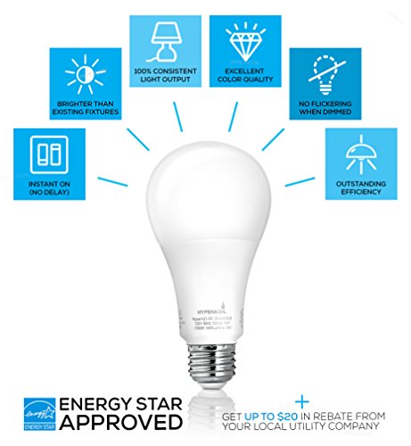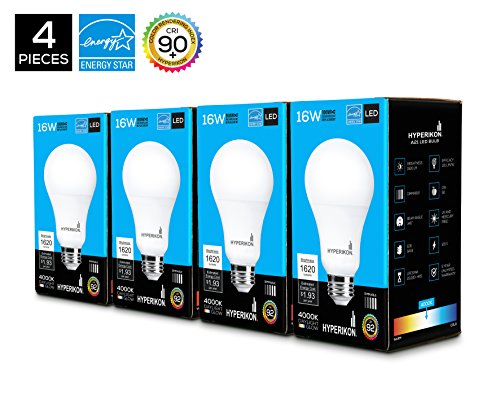 Hyperikon 16W LED Light Bulb A21, 16W (100W Equivalent), CRI92, 1620 Lumens, 4000K (Daylight Glow), Medium Screw Base (E26), ENERGY STAR Certified, UL-Listed, Dimmable - (Pack of 4)