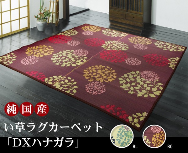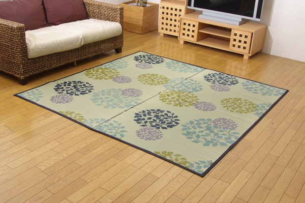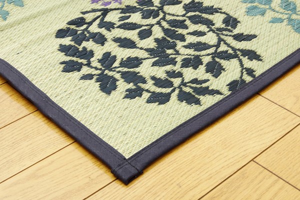 【商品名】純国産 花柄 い草カーペット 『DXハナガラ』 ブルー 140×200cm