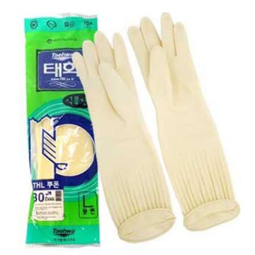 TAEHWA Kitchen Natural Rubber Gloves Latex Household Cleaning Gloves, 2 Pairs (Ivory)