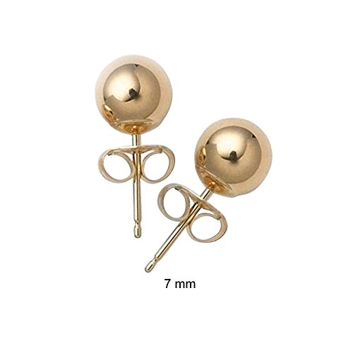 These timeless classic 7mm gold ball stud earrings bring to mind the sophistication of past generations, as their bold presence never goes out of style. These ball stud earrings are crafted out of exquisite 14 karat gold. A chic pair of gold stud earrings will always be in fashion and make the perfect gift for everyone for any occasion. For pierced ears only.Feature