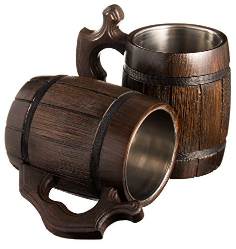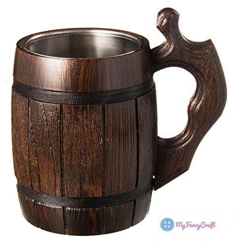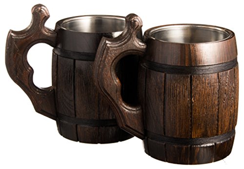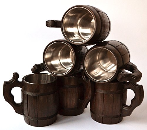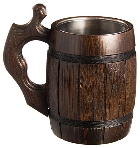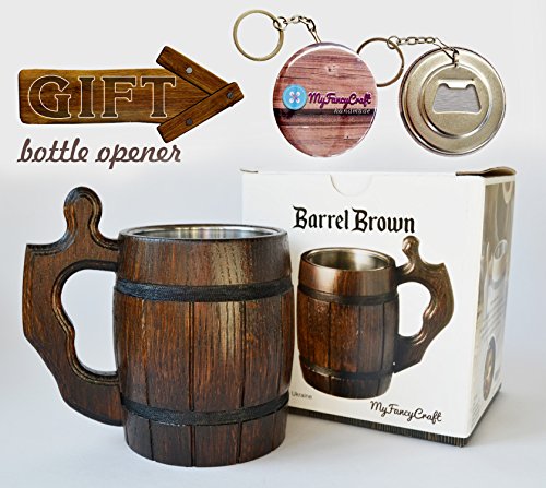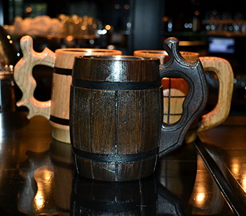 Handmade Beer Mug Oak Wood Stainless Steel Cup Natural Eco-Friendly 0.6 liters 20 ounces Barrel Brown