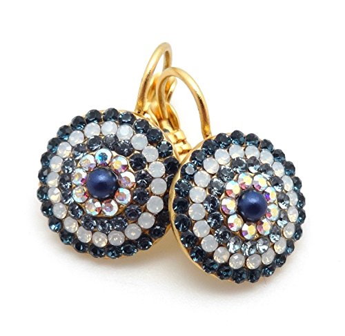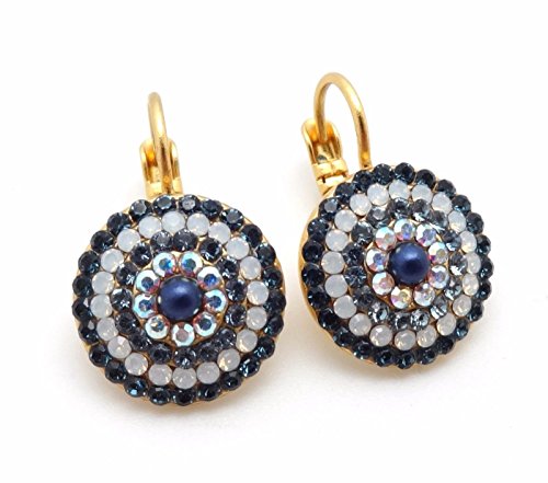 Beautiful mix of Swarovski Crystals in Montana, White Opalescent, Light Blue and Crystal AB with a Blue Swarovski Seed Simulated Pearl. Color 1069 - Mood Indigo Collection