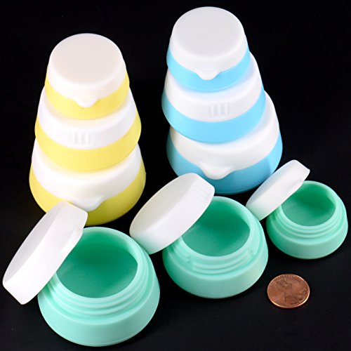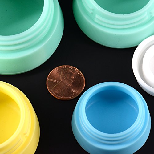COSMETICS JARS: You can store all of your various cosmetic creams and make-up in these nine jars. They come in 3 different sizes and colors, and stack together easily to conserve space.